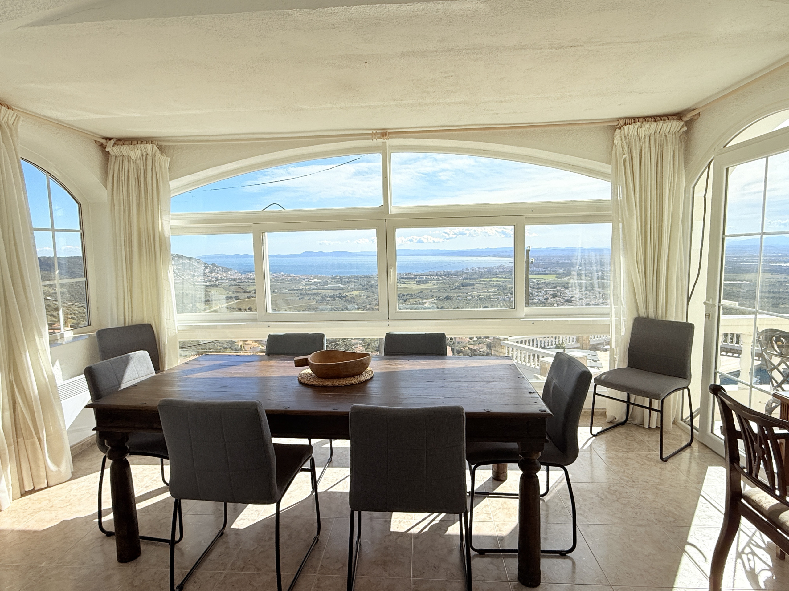 De salon, met uitzicht op de indrukwekkende baai, is een lichte en gezellige ruimte.